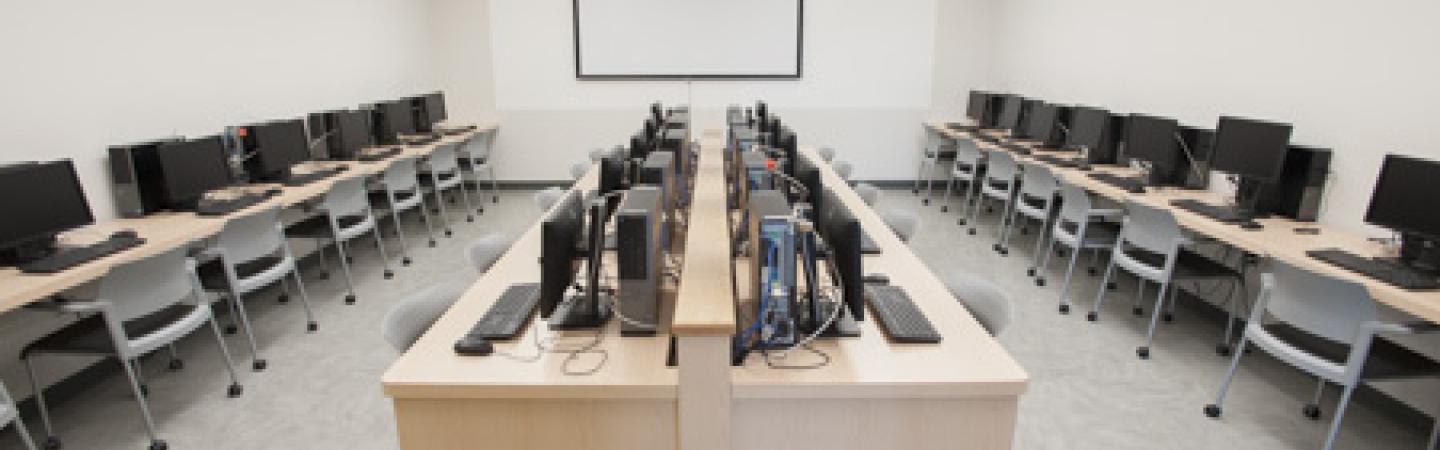 PS 130 was designed based on the idea that students will get more out of their class time while in a setting that facilitates collaboration with their peers. Circular tables of six to eight students enable them to establish “rapport that may not have been possible in a more conventional lecture hall,” says Dr. James Frazee, Deputy CIO and Senior Associate Vice President.